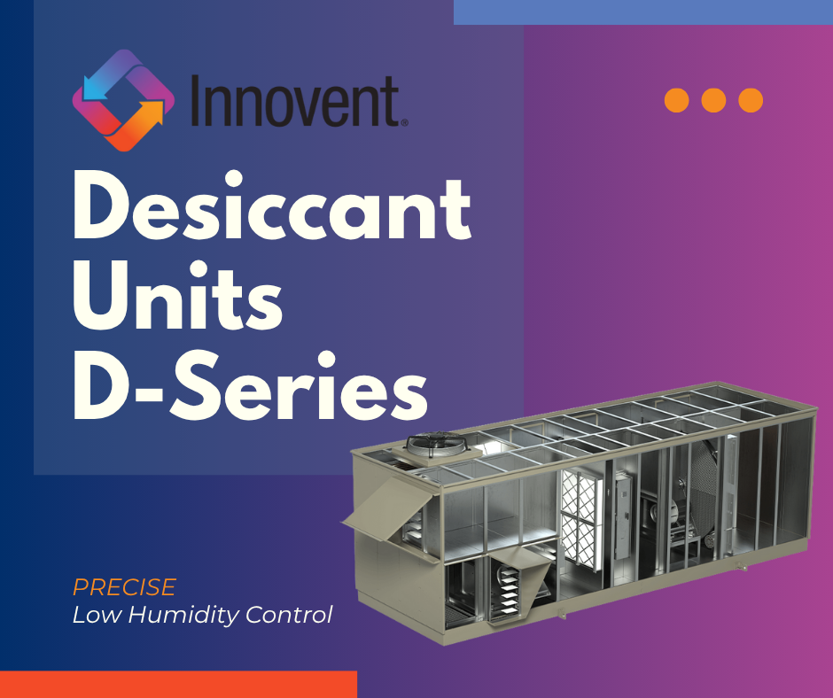 For spaces that need to be maintained at low humidities and tight tolerances beyond the capabilities of typical air handling equipment, count on Innovent’s D-Series units. These units deliver extra dry air to maintain spaces below 50% relative humidity.